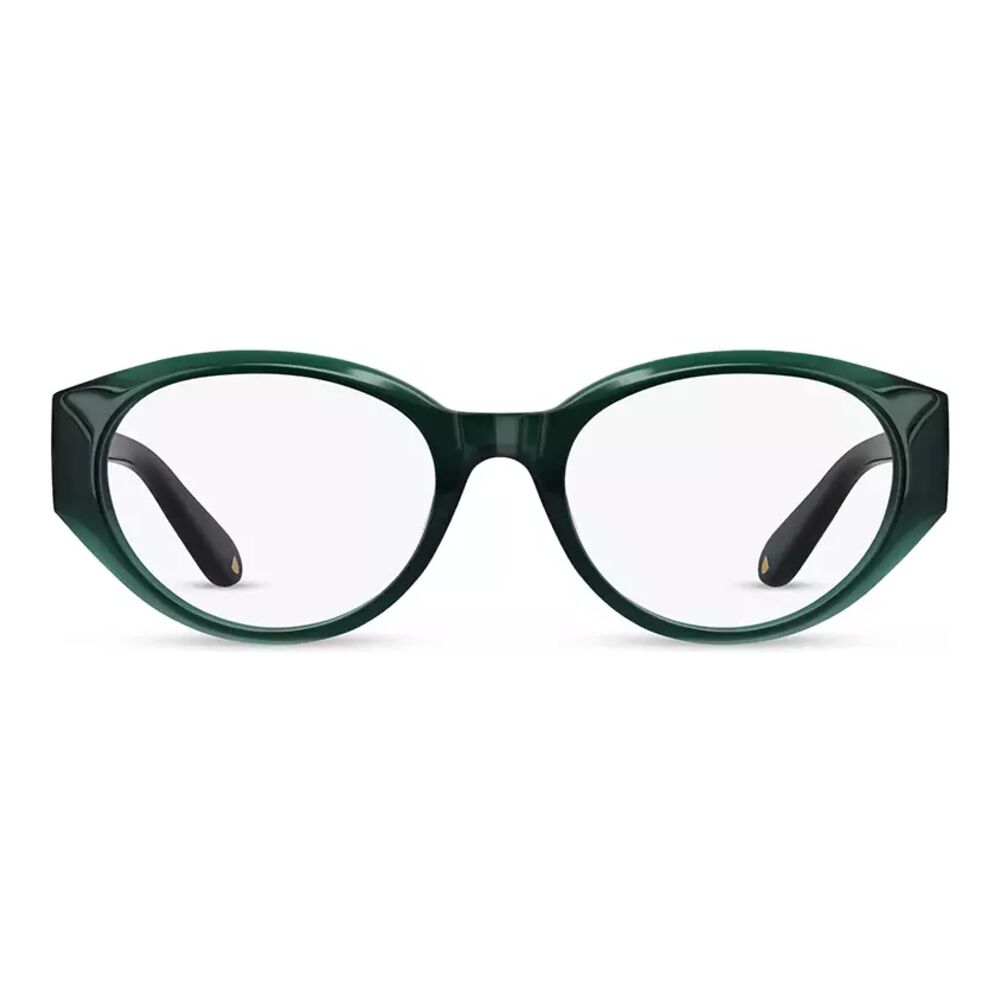 A contemporary women’s round frame crafted from bio‑based acetate with custom gold‑tone hardware and chic pin detailing. Elegant, modern and fully compatible with all prescription lenses.