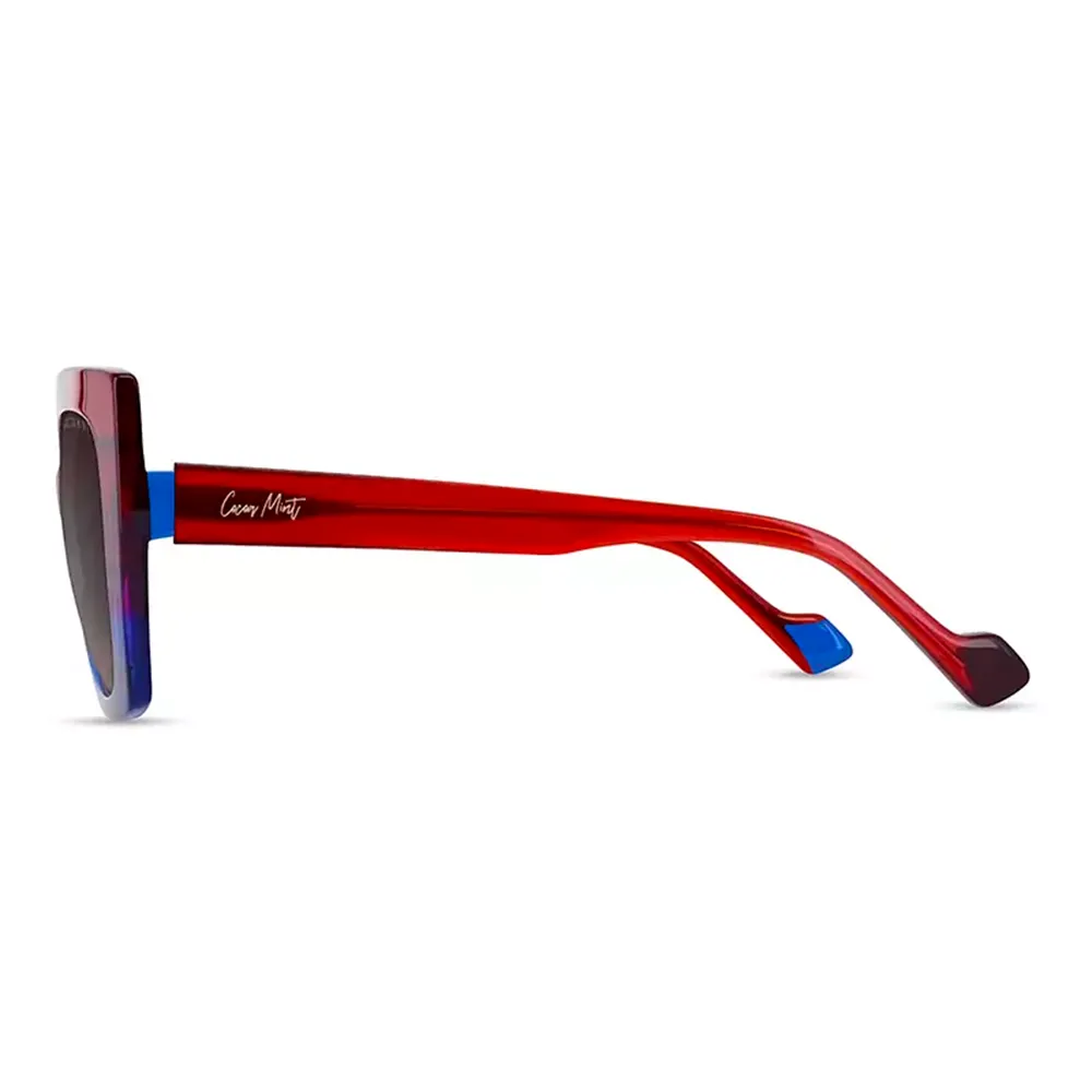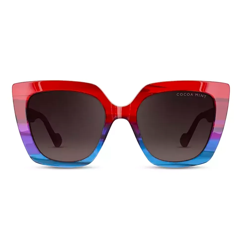 The Cocoa Mint CMS 2151 is crafted from bold scarlet ombré acetate, creating a striking gradient that moves from rich red tones into deeper, more sophisticated hues. This dramatic colour transition gives the frame a confident, feminine character while remaining wearable and refined. The design is further elevated by colour‑block lug and tip lamination, adding a modern, graphic edge that enhances the frame’s boutique aesthetic.