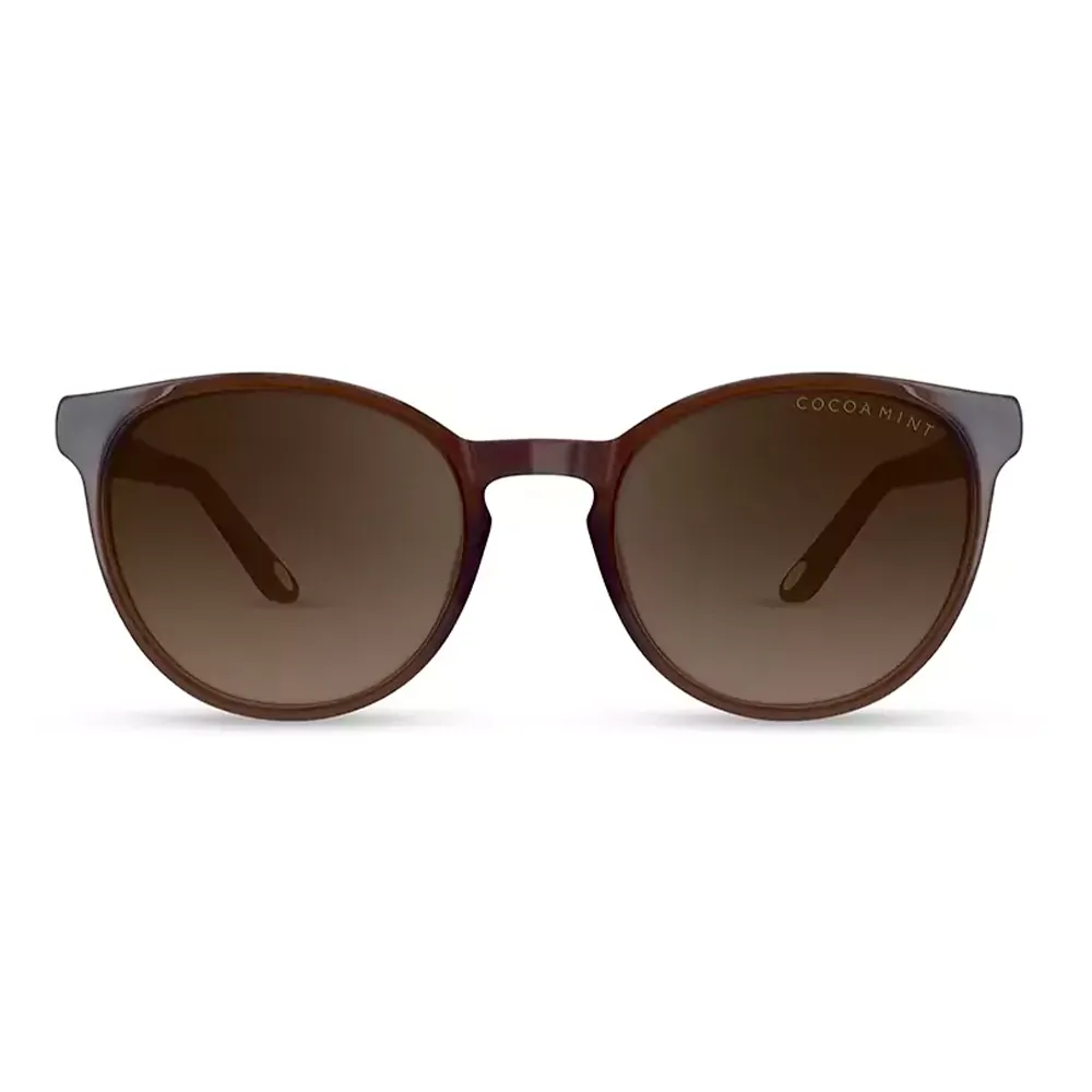 A vintage‑inspired bio‑acetate sun frame with metallic temple hardware and brown graduated CR39 Cat. 3 UV400 lenses.