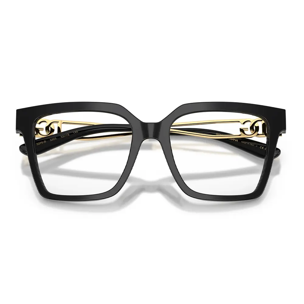 The DG3376B features a modern square design with crystal‑accented temples, crafted from premium acetate for comfort, durability, and signature Dolce & Gabbana elegance.