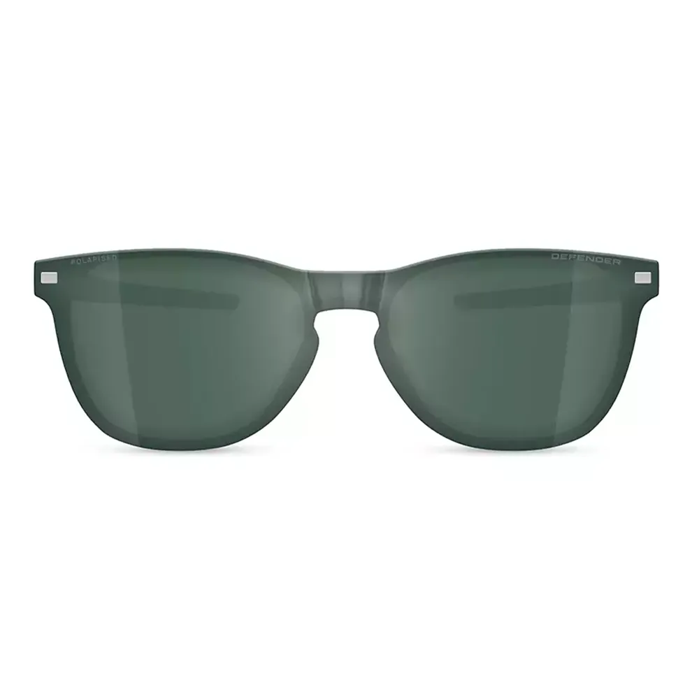 A rugged bio‑based G850 frame with silicone temples and two magnetic polarised clip‑on sun lenses — durable, versatile and Defender‑inspired.
