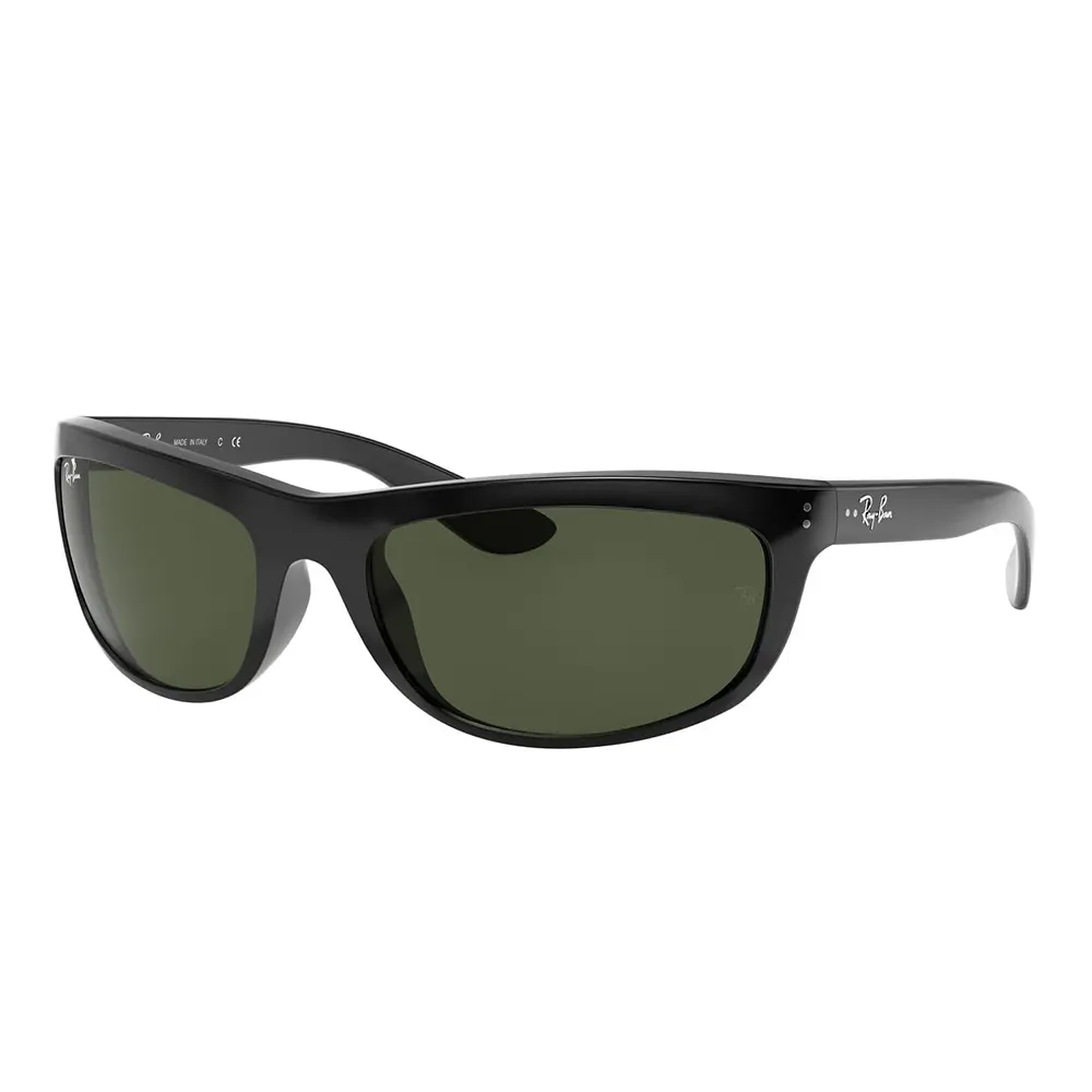 The Ray-Ban Balorama RB4089 sunglasses showcase a distinctive wrap-around frame design made from durable acetate. The sleek, full-rim design offers both comfort and style, perfect for those who enjoy a bold, classic look with a modern twist.