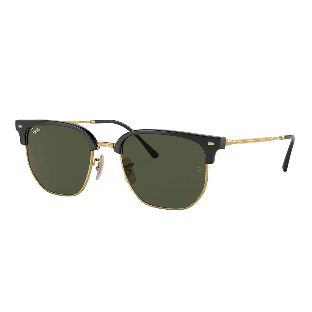 The Ray-Ban RB4416 New Clubmaster sunglasses feature a timeless browline design with a polished black and gold frame. These sunglasses, equipped with crystal green lenses, provide full UV protection and offer a bold yet classic look, ideal for any occasion.
